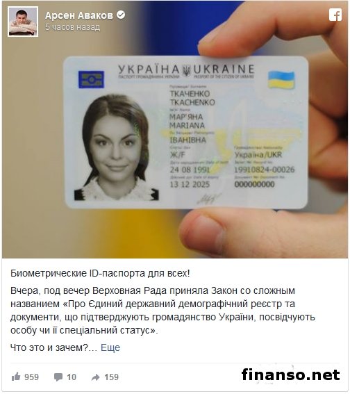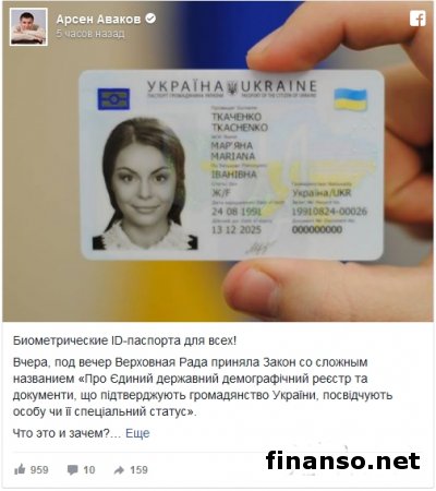 Глава МВД Арсен Аваков заявил, что первая ID-карта, которая будет выдаваться вместо паспорта, в соответствии с принятым накануне законом, будет бесплатной. Об этом министр написал на своей странице в соцсети «Фейсбук». Как удалось выяснить корреспондентам новостного интернет-портала «Украина сегодня: Finanso.net», по его словам, принятый парламентом закон приблизил нашу страну к безвизовому режиму с ЕС. А. Аваков подчеркнул, что, конечно, без принятия этого закона Украины безвизовый въезд наших граждан был бы невозможен в принципе. «Первая ID-карта для 14-летних будет оформляться бесплатно», – добавил он. Указанная система, рассказал министр, позволит в последующем должным образом формировать в стране Единый демографических реестр. Для идентификации личности вся информация в нем о выданных гражданину документах будет сведена в общую базу данных по обмену, оформлению, выдаче или признании недействительным и ликвидации документа, подтверждающего личность, регистрации места проживания или места нахождения. При этом, начиная с 14 лет, по желанию на чип внутреннего паспорта в цифровом виде будут записываться отпечатки пальцев, а при оформлении заграничного паспорта это будет делаться обязательно. Бесплатно будет записываться в паспорте цифровая подпись гражданина.Также на чип этого документа будет записываться цифровая подпись гражданина. Согласно закону, открытие ЕЦП будет бесплатным. В дальнейшем, как уточнил А. Аваков, чип можно будет дополнять различными современными сервисами. Например, это может быть возможность электронного голосования или же получение админуслуг в режиме онлайн. Руководитель МВД добавил также, что местные советы теперь получили право самостоятельно определять категорию граждан, освобождаемую от уплаты за оформление паспорта, в числе которых могут быть дети-сироты, участники АТО и др. С настоящего времени они могут компенсировать этим людям стоимость изготовления документа. За счет Единого реестра новые паспорта теперь защищены от подделки и несанкционированного использования. А. Аваков пояснил, что оформлять и выдавать внутренние и заграничные паспорта будут в Центре предоставления админуслуг, а также в отделениях миграционной службы, что уберет «коррупционную кормушку». Министр также отметил, что в обоих случаях миграционная служба станет бэк-офисом, и за ней останется отдаленное подтверждение информации в Едином реестре. |