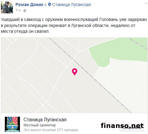 41-летний военный, ушедший в самоволку, подозревается в расстреле 28-й механизированной бригады под Станицей-Луганской.Стало известно, что дезертир из Вооруженных сил Украины Виктор Головань, который расстрелял двух сослуживцев вблизи Станицы Луганской, был задержан. Как передают корреспонденты «Украина сегодня: Finanso.net», информацию об этом в своем аккаунте в социальной сети «Фейсбук» сообщил волонтер Роман Доник. В соответствии с информацией волонтера, в результате операции «Перехват» в Луганской области был задержан особо опасный дезертир Вооруженных сил Украины Головань. Так, Донник написал: «В результате операции «Перехват» в Луганской области был задержан военнослужащий Головань, который ушел в самоход с оружием. Задержали дезертира недалеко от места, откуда он свалил». Напомним, ранее в пресс-центре антитеррористической операции сообщили, что 12 сентября позиции 28-й отдельной одесской механизированной бригады в районе Станицы Луганской были атакованы вражеской диверсионно-разведывательной группой. Якобы бой длился 15 минут. В результате погибли двое военнослужащих, еще пятеро получили ранения. Один человек пропал без вести. Это произошло на контролируемом Украиной левом берегу Северского Донца вблизи поселка Артема в Станично-Луганском районе. В свою очередь, Одесское издание Думская опровергло информацию о бое с диверсионно-разведывательной группой и сообщило, что военных расстрелял вооруженный дезертир Виктор Головань. Он скрылся предположительно на оккупированной территории. Такую же информацию ранее сообщил и общественный деятель Николай Колесник. Он сказал, что данные о потерях сил АТО от рук вражеской ДРГ 12 сентября, как об этом сообщал штаб АТО, оказались ложными. Двух украинских военных убил их сослуживец, еще пятеро бойцов получили ранения. После этого Головань самовольно оставил место службы. Последствиями этих событий стала гибель кадрового офицера – капитана Юрия Сметанина и солдата Андрусовича. |
