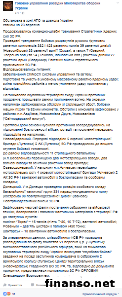 В настоящее время Федеральная служба безопасности Российской Федерации (ФСБ РФ) расследует убийство российского военного. В пресс-службе Главного управления разведки Министерства обороны Украины сообщили, что в оккупированном боевиками Луганске был убит высокопоставленный офицер Российской Федерации. Как удалось выяснить корреспондентам издания «Украина сегодня: Finanso.net», в сообщении говорится: «Согласно оперативным данным, сотрудники Федеральной службы безопасности России проводят расследование по факту убийства в Луганске в среду, 21 сентября, высокопоставленного офицера РФ». В разведке сообщили, что о личности убитого российского военнослужащего удалось кое-что выяснить. Так, им оказался заместитель командующего (по вооружению) 2-го армейского корпуса (Луганск) Центра территориальных войск (Новочеркасск) Южного ВО ВС РФ, который выполнял на Донбассе «служебно-боевые» задачи. В ведомстве также отметили, что, согласно документам прикрытия, военный представлялся Александром Борисовичем Орловым, полковником Вооруженных сил Российской Федерации. Также в ГУР сообщили, что в настоящее время в зоне антитеррористической операции (АТО) на Донбассе оккупанты проводят расследование убийства высокопоставленного российского офицера. Ситуация на Донбассе.Как известно, на своей странице в соцсети «Фейсбук» ГУР МО Украины обнародовало сообщение, в котором говорится, что на временно оккупированных территориях Донбасса противник продолжает нарушать режим прекращения огня. На отдельных направлениях осуществлялись обстрелы из стрелкового оружия, боевых машин пехоты и 82-мм минометов. Обстрелы из минометов зафиксировано в районах н. п. Авдиивка, Новоселовка Вторая, Новозвановка («Светлодарск выступление»)… |