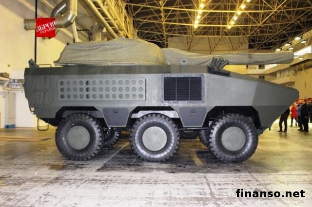 Новый отечественный бронетранспортер способен перевозить 10 человек, а его вес составляет 16 тонн.
