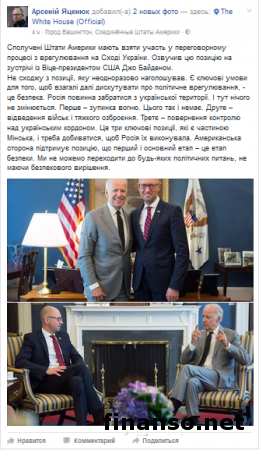 Яценюк обсудил с Байденом поддержку Украины при новом президенте СШАКатегория: Украина