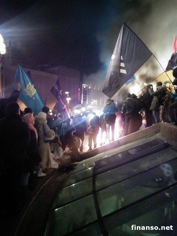 Как удалось выяснить корреспондентам издания «Украина сегодня: Finanso.net», столкновения на Майдане произошли между митингующими и правоохранителями, в том числе между представителями различных праворадикальных организаций, которые пытались пронести шины на главную площадь столицы Украины. Очевидцы происходящего в своих аккаунтах в «Фейсбуке» сообщают, что нескольким десяткам человек удалось прорвать оцепление правоохранителей в обход металлоискателей и занесли со стороны Европейской площади покрышки к стеле. Первоначально активисты всячески пытались пронести шины на Европейскую площадь, а позже вернулись на Майдан Независимости, зажгли файеры и начали выступления на импровизированной сцене. Немного позже, вскоре после инцидента с правоохранительными органами на Майдане существенно увеличилось количество как стражей порядка, так и самих участников вече. Отмечается, что среди представителей праворадикальных организаций наблюдается символика ОУН, «Правого сектора», «Черного комитета», а также «Молота». По данным некоторых СМИ, конфликт на Майдане произошел между правоохранителями и сторонниками «Правого сектора» и ОУН. Причиной тому стал призыв Николая Коханивского, командира батальона ОУН, принести шины к Майдану и поджечь их на вече. |