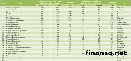 Мэры городов Украины: у кого растет, а у кого падает популярность в декабре 2013г.Категория: Украина
