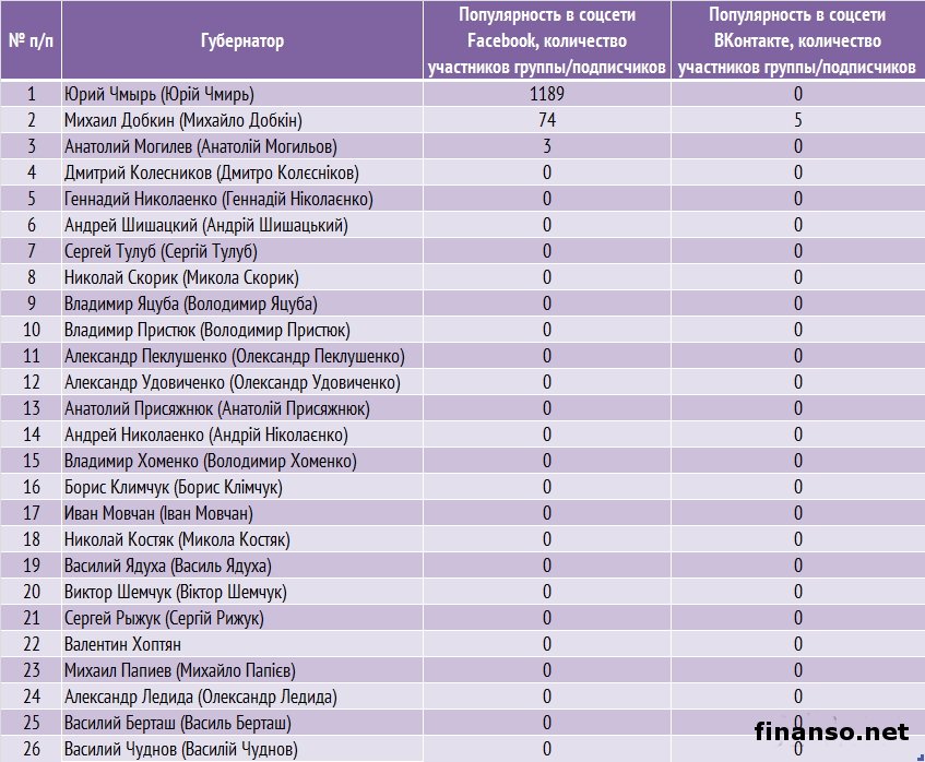 Определены самые популярные губернаторы Украины в январе 2014 г.Категория: Украина