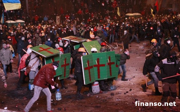 Корреспонденты «Украина сегодня: finanso.net» сообщают о том, что в наступательных действиях применяется огнестрельное оружие. Представители правоохранительных органов начали эвакуацию из правительственного квартала. Активисты оттесняют силовиков.Стало известно, что бойцы спецподразделения «Беркут» активно перемещаются с Институтской улицы к зданию Верховной Рады. По Институтской улице продвигаются автобусы с представителями силовых структур, машина скорой помощи и пожарный автомобиль. По этой улице осталась свободной только одна полоса, остальные проезды перекрыты бетонными плитами. «Беркутовцы» рассредоточиваются на подступах к зданию Верховной Рады со стороны улиц Шелковичная, Липская, Садовая. Противостояние возобновилось, Киев в дыму и огне. С самого утра в центре Киева возобновилось силовое противостояние представителей силовых структур с протестующими. Медицинская служба Майдана оказала помощь двум пострадавшим в ходе столкновений, одному из демонстрантов был сделан непрямой массаж сердца. Центр Киева весь в дыму и огне: летают взрывпакеты, файеры, свето-шумовые гранаты. Возле памятника основателю Киева активисты усиленно укрепляют баррикаду металлическими щитами и прочими подручными материалами. На Майдане продолжают жечь покрышки, туда постоянно съезжаются «скорые помощи». К Майдану съезжаются люди с других регионов Украины, а также жители Киева, об этом сообщается со сцены Майдана. Журналисты издания «Украина сегодня: finanso.net» передают, что расставленные посты ГАИ не пропускают автомобили, направляющиеся к Майдану. Сегодня, 20 февраля, в Украине объявлен день траура по погибшим во время силовых столкновений на Майдане. Вчера вечером, 19 февраля, президент Украины Виктор Янукович провел переговоры с представителями оппозиции о мирном разрешении конфликта и перемирии. После переговоров двух сторон Арсений Яценюк заявил, что оппозиция не будет начинать штурм. Он также отметил, что планируемый властью штурм Майдана отменен, главной целью теперь является мирное урегулирование конфликта. Как сообщил Яценюк, нынешнее руководство страны хотело ввести Чрезвычайное положение и произвести штурм Майдана, но после переговоров было принято решение не проводить никаких силовых мер. Оппозиция со своей стороны прилагает усилия для мирного исхода событий. |