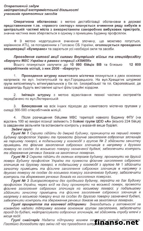 «Материалы о криминальной деятельности правоохранительных органов, на свой страх и риск, помогали собрать патриотически настроенные сотрудники СБУ и МВС. И наконец, у меня в руках оказались планы специальных операций по силовому разгону акций протеста «Волна» и «Бумеранг», - объявил Геннадий Москаль. Огласка документов - решение Москаля.«Мною было принято решение придать огласке часть этих планов; документы, которые доказывают, что снайперы на улице Институтской были сотрудниками подразделения внутренних войск, во главе которых стоит полковник Сергей Асавалюк, а также бойцы подразделения «Омега», - рассказал депутат. «Приказ на применение оружия спецподразделению ГУБОЗ Министерства внутренних сил «Сокол» дал Виталий Захарченко, экс-министр МВС», - добавил Москаль. Также он подчеркнул, что «на основе этих документов Генеральная прокуратура Украины должна открыть криминальные производства», о чем пишет "Украинская правда". «После этого я по собственной воле передам следователям Генпрокуратуры остальные материалы, которые указывают на причастность к кровопролитию в стране Виталия Захарченко, министра МВС, его первого заместителя Сергея Ратушняка, главу департамента гражданской безопасности МВС Александра Крикуна, командира внутренних войск Станислава Шуляка. А также исполняющего обязанности руководителя ГУМВС в городе Киеве В. Мазана, голову СБУ О. Якименко и его первого заместителя В. Тоцького и руководителя УСБУ в Киеве и Киевской области О. Щоголева», - добавил он. Геннадий Москаль сообщил: «Помощь в подготовке спецопераций СБУ и МВС предоставил экс-заместитель ГРУ России, который в то время проживал в гостинице «Киев». Власти украинского государства задействовали специалиста из Российской Федерации, поскольку наш руководитель СБУ оказался летчиком, а министр МВС – ОБХСС - ником». «Все данные о гражданине России будут переданы Генеральной прокуратуре, а степень его вины пусть определяет следствие. Кроме этого, я готов передать Генпрокуратуре доказательства, которые указывают на то, что при силовом разгоне Майдана СБУ и МВС действовали, как организованная преступная группировка», - рассказал Москаль. «О планах «Волна» и «Бумеранг» докладывалось высшему руководству государства, и вводились они в действие только после его одобрения», - отметил он и высказал свое возмущение, «что на данный момент, никому из чиновников не вручено сообщение о подозрении, никто их них не арестован или, по крайней мере, задержан». |