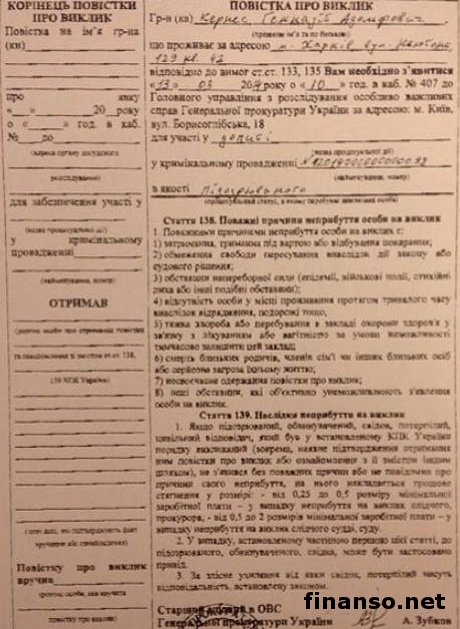 Такую информацию, с прилагающим к ней документом, обнародовал журналист из Харькова Зураб Аласания. Как выяснили корреспонденты издания “Украина сегодня: Finanso.net”, в повестке, фото которой было опубликовано во вторник, 11 марта текущего года, в Instagram харьковского головы Геннадия Кернеса, говорится: “Вам необходимо явиться 13.03.2014 года в 10 часов 00 минут в кабинет №407 Главного управления по расследованию особо важных дел Генеральной прокуратуры Украины… для участия в допросе в качестве подозреваемого”. Напомним, ранее мэр города Харькова заявлял, что он полностью готов ответить за все свои слова, дела и поступки, однако если это будет происходить в “рамках действующего в Украине законодательства, а не по желанию революции”. За день до этого после допроса арестовали Добкина.Издание “Украина сегодня: Finanso.net” ранее вчера сообщало, что Украину потрясло известие о том, что на допрос в Генеральную прокуратуру Украины в городе Киеве был вызван бывший руководитель Харьковской областной государственной администрации (ОГА) Михаил Добкин. Сообщалось, что в столицу по этому поводу Добкин прибыл добровольно, без какого-либо сопротивления. Кроме того, известно, что в Генпрокуратуре с экс-губернатором Харьковщины проводили следственные действия в соответствии с действующим в стране законодательством. Также сообщалось и о том, что после допроса Добкина в Генпрокуратуре его адвокат Юлия Плетнева сообщила, что из здания ГПУ в Киеве экс-губернатор так и не вышел, поскольку в соответствии с постановлением Шевченковского районного суда от 1 марта текущего года, он был арестован и направлен в СИЗО. При этом правозащитник М. Добкина утверждает, что ее подопечный был задержан незаконно. В настоящий момент Михаил Добкин находится в СИЗО, и сегодня, 11 марта 2014 года, в Шевченковском районном суде Киева в отношении экс-губернатора будет избрана мера пресечения. Согласно информации украинских средств массовой информации, ссылаясь на слова экспертов, более всего Генеральная прокуратура Украины будет настаивать на содержании Добкина под стражей. |