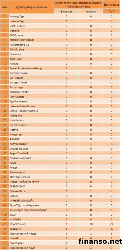 Определены самые известные туроператоры Украины в феврале 2014 годаКатегория: Украина