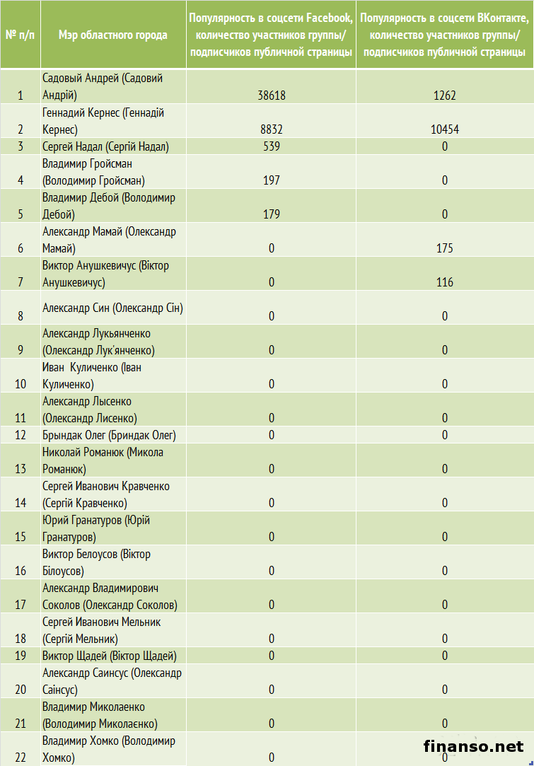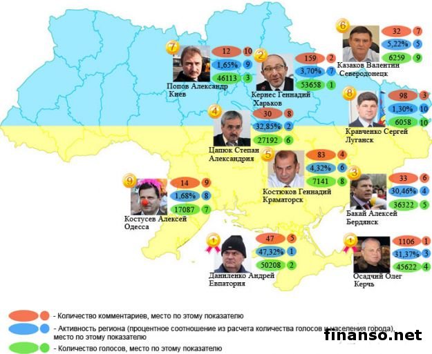 Названы самые популярные мэры областных центров Украины марта 2014 г.Категория: Украина