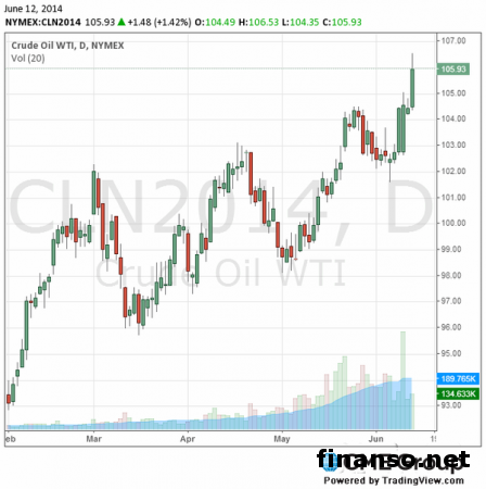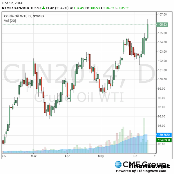Цена фьючерсов на нефть марки WTI (Light Sweet Crude Oil) с поставкой в июле увеличилась до 106,53 американского доллара за баррель на товарной бирже (NYMEX) в Нью-Йорке, передают брокеры компании TeleTrade.