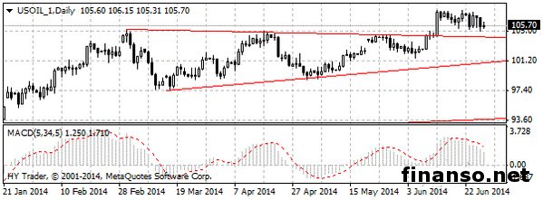 Недельные торги «черное золото» закончило падением. По словам экспертов брокерской компании HY Markets, «черное золото» закончило недельные торги с уменьшением в первый раз после того, как на северной территории Ирака началась междоусобная война, ведь до настоящего времени она не затронула поставки топлива из одной из крупнейших стран ОПЕК по добыче нефти. В первой половине недели стоимость нефти превышала 106 американских долларов за баррель и была поддержана сильной статистикой из Америки.