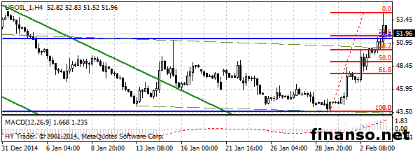 До 59 долларов за баррель поднималась стоимость барреля Brent перед закрытием торгов во вторник, о чем сообщают аналитики Форекс-рынка. Снизившись вчера перед закрытием, вначале сегодняшних утренних торгов она снова пошла вверх. Третий день подряд продолжает расти цена на нефть марки Brent. До 59 долларов за баррель поднималась она впервые с конца 2014 г., в ходе вечерних торгов на бирже ICE, а на 6 процентов она выросла накануне. Упав до 57,88 доллара за баррель, в последний раз нефть Brent стоила так 29 декабря 2014 г. , ни разу (после этого) не поднявшись до 59 долларов. Об этом пишут корреспонденты издания «Украина сегодня: Finanso.net».Почти на два процента выше уровня закрытия вчерашних торгов, в районе 58 долларов за баррель, колеблется стоимость фьючерсов с поставкой в марте 2015 г. в ходе торгов на ICE в среду. Ожиданиями снижения добычи нефти в США объясняют этот рост цен эксперты. До минимального значения за три года сократилось число эксплуатируемых скважин в США, после недавнего вывода здесь из эксплуатации еще 352 скважин. Прироста коммерческих запасов нефти в подземных хранилищах ожидает большинство аналитиков, согласно проведенному опроса агентством Bloomberg. Поводом для возобновления роста цен на нефть стали новости о забастовках на нефтеперерабатывающих предприятиях США, которые, как предполагалось, должны были привести к снижению спроса на сырую нефть. Об этом рассказывает издание «Биржевой лидер». Нефть протестировала $54.20, но отступила к $51.56.На спекуляциях , что резкое падение буровых работ в США может привести к сокращению поставок нефти, показав максимумы дня выше 54 долларов, впервые за последний месяц, во вторник, стремительно выросли в цене нефтяные фьючерсы. Об этом сообщают эксперты Форекс-компании HY Markets. На уровне 44,45 доллара за баррель (минимальный уровень с марта 2009 г.) закрылись на прошлой неделе цены на нефть. Свою статистику по запасам сырья опубликует во вторник вечером Американский институт нефти. Министерство топлива предоставит аналогичный отчет в среду. Рекордный рост запасов сырой нефти, как предполагают аналитики, засвидетельствуют эти данные. По сообщению экспертов компании HY Markets, отступив к 51,56 доллара, сегодня, 4 февраля, нефть протестировала 54,20 доллара (ближайшее сопротивление). На 56.20 доллара (38.2% Фибо падения с 76.85 доллара) находится сопротивление выше. Ниже в области 48,90 доллара (50 процентов) и на 50,20 доллара (38,2 процента сегодняшнего ралли) находится поддержка. |