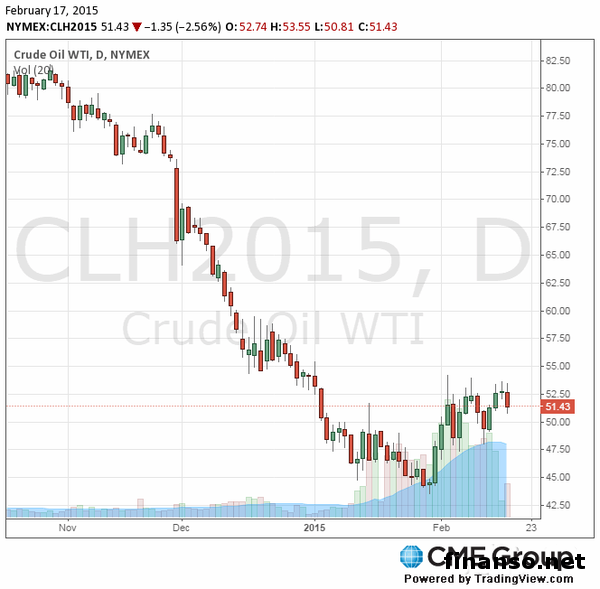 В связи с тем, что для итогового уменьшения добываемого в СЩА топлива недостаточно сокращенного числа буровых установок, по опасению инвесторов, впервые за четыре сессии нефть перешла к снижению, сообщают эксперты компании TeleTrade. На рекордном за три десятилетия и постоянно растущем в США уровне находится объем извлекаемой нефти, несмотря на то, что треть нефтедобывающих скважин в стране американские нефтедобывающие компании за последние десять недель законсервировали. Превышает 415 млн. баррелей, продолжая при этом увеличиваться, уровень нефтезапасов в США. До рекордных (с июля 2013 г.) 42,6 млн. баррелей, поднявшись на 1,21 млн. баррелей, составили за неделю, завершившуюся 6 февраля, запасы нефти на терминале в Кушинге, где хранятся торгуемые на NYMEX физические объемы топлива. Об этом пишут корреспонденты издания «
