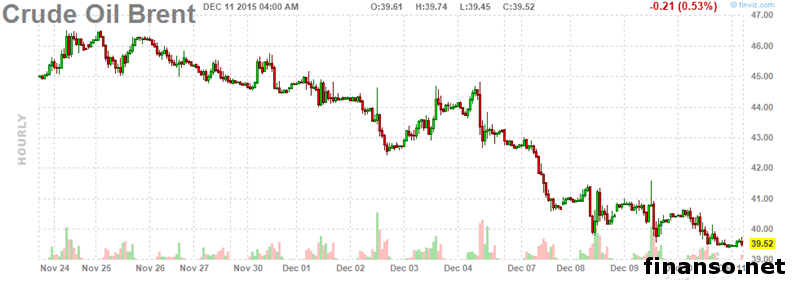 11 декабря текущего года в период открытия сессии Европы фьючерсы нефти оказались под мощным давлением при учете отчета стран участников-членов ОПЕК. Данный отчет продемонстрировал: за один месяц масштаб добычи будет больше, чем предполагалось. Цена фьючерсного инструмента марки Brent с экспирацией декабря уменьшилась ниже значимой психологической отметки в 40 долл. за баррель. Исходя из этого, нефтяные торги проходят в пределах 39,64 доллара. Подробностями интересовались корреспонденты издания «