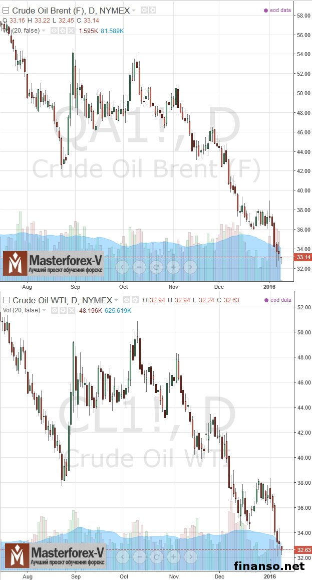 В рамках Интерконтинентальной биржи во время продаж снова зафиксировано падение цены на нефть. Говоря точнее, марка нефти Brent опустилась до отметки в 32,77 американских долларов за баррель. В сравнении с прошлым показателем, падение достигло 2,3 процента. Фактически на 2 процента снизилась нефть WTI, которая в настоящее время продается у уровня в 32,52 доллара за каждый баррель. «В общем подобная ситуация считается логичной, потому сейчас начало года ассоциируется не просто с сокращением цены на нефть, но и с явным обвалом ключевых фондовых индексов», – констатируют специалисты брокерской компании Verum Option. Подробностями интересовались корреспонденты информационно-аналитического издания «Украина сегодня: Finanso.net». Как стало известно журналистам информационно-аналитического издания по экономике и предпринимательству «Биржевой лидер», по результатам прошлой недели марки нефти Европы максимально приблизились к критическому уровню в 30 долларов за баррель. Стоит отдавать себе отчет в том, что тем самым были обновлены абсолютные минимумы на протяжении последних 12 лет. Одновременно с этим даже самые стабильные и авторитетные европейские, азиатские и американские фондовые рынки в среднем снизились на 6-14 процентов. Такие коррективы происходят на фоне международных ожиданий нового значительного замедления скорости роста общемировой экономики. Деловое издание «Биржевой лидер» рассказывает также и о том, что общий негатив, на данный момент времени сформировавшийся в той же мировой экономике, еще и явно усиливается в связи с действиями китайского Народного банка. Регулятор Китая всячески старается спастись от глобального снижения своей экономики, пренебрегая нацвалютой, которая продолжает утрачивать личные позиции в отношении к доллару. Такие прогнозы специалистов вполне логичны.Далеко не самые позитивные финансовые ожидания не считаются благоприятной сферой для активной инвестдеятельности. В минувшую среду мировой банк озвучил новый прогноз по поводу того, что в нынешнем году рост финансовой сферы по всему миру составит не более 2,9, а не 3,3 процента, как предполагалось специалистами раньше. Специалисты утверждают: главный сдерживающий фактор, что не даст мировой финансовой сфере быстро развиваться, будут являться развивающиеся государства. Вопрос в том, что, по результатам текущего года, развивающиеся экономики должны вырасти на 4,8 процента, а этого мало для формирования более положительных прогнозов. |