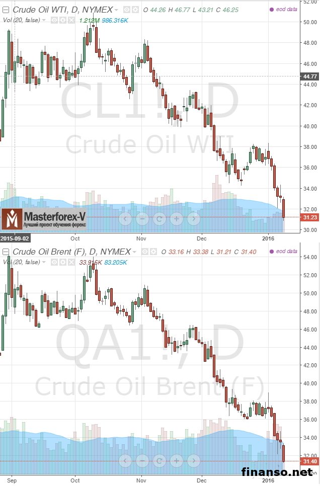 Цена нефтяного фьючерса известного бренда Brent с последующей поставкой в феврале нынешнего года на популярной бирже ICE в английском Лондоне снизилась более чем на 5 процентов, до уровня в 31,94 доллара США за каждый баррель. При этом нефть Brent снизилась до на самом деле сниженного внутридневного показателя с начала весны 2004 года. Сама котировка договора на широко востребованную нефть марки WTI с поставкой в феврале месяце на NYMEX снизилась до 31,75 доллара за баррель. «Таких коррективов значений WTI достигала в последний раз в конце 2003 года», – констатируют иностранные средства массовой информации. Подробностями интересовались корреспонденты информационно-аналитического издания по экономике «