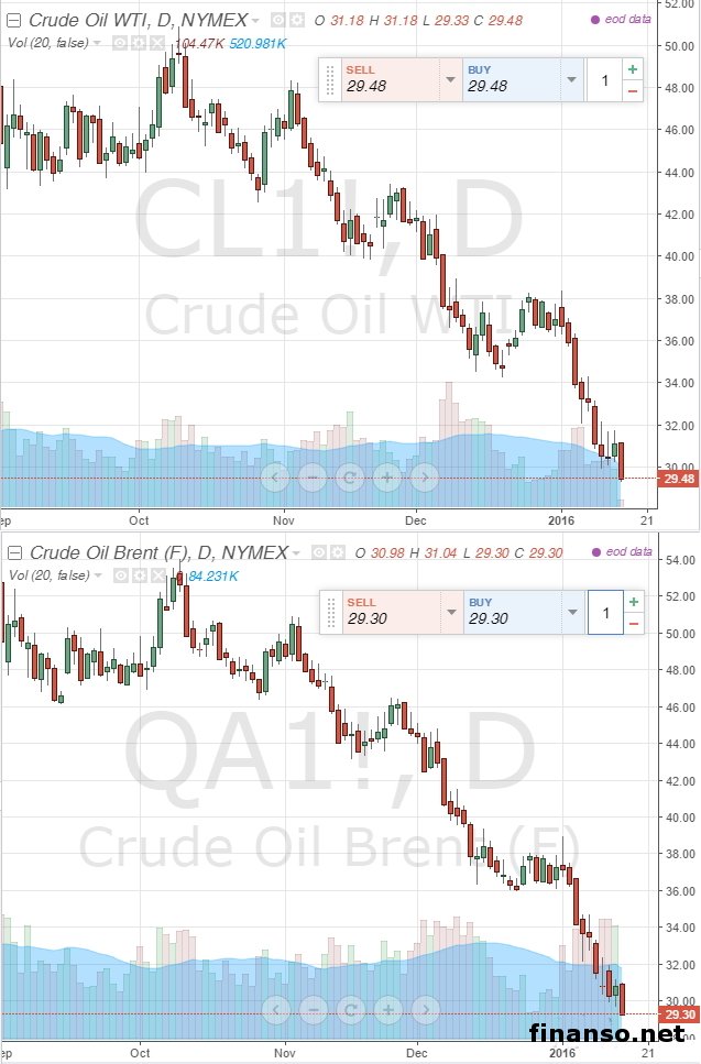 Как пишут в настоящее время СМИ: цена одной из самых дешевых марок нефти, которая добывается в Канаде (WCS), упала до уровня в 14 долларов за номинальный объем. Подобные показатели приведены изданием «The Wall Street Journal» в Америке. В связи с этим фактом отмечается: данная марка считается эталонной в вопросе формирования стоимости тяжелой нефти, которая добывается в иных государствах. Подробностями интересовались корреспонденты информационно-аналитического издания «Украина сегодня: Finanso.net».Как стало известно журналистам информационно-аналитического издания по экономике и предпринимательству «Биржевой лидер», сейчас активно продолжается ценовое снижение и на остальные столь же низкокачественные марки нефти. Таким образом договора на поставку оманской нефти упали до 26 долларов. Данный сорт считается так называемым «бенчмарком» для сырья Ближнего Востока. Североморская марка нефти к 10.00 продавалась по цене в 30,37 доллара за основной объем. «Западнотехасская марка в Нью-Йорке стала дешевле до уровня в 30,32 доллара»,– констатируют специалисты брокерской компании NordhillCapital. Пару дней назад энергетическое ведомство Америки обнародовало обновленный прогноз, по данным которого среднегодовая стоимость бренда Brent составит приблизительно 40 долларов Америки. Раньше существовало предположение: в текущем году эта марка в среднем будет стоить свыше 55 долларов. По словам специалистов самых больших банков Америки, которые были опрошены журналистами, средняя стоимость жидких углеводородов североморской марки будет находиться в границах 50-57 долларов Америки. В то же время нефть США стабилизируется у уровня в 48 долларов за номинальный масштаб. Основная причина, которая спровоцировала новый обвал котировок нефти – вероятность падения темпов роста экономики Китая, о чем свидетельствует обвал индексов фондовых местных рынков более чем на 20 процентов. При этом, по существующим предположениям, которые были сделаны экспертами английского Standard Chartered, скорее всего, цена нефти в текущем году снизится и до 10 долларов за одну бочку. К этому может привести продолжающийся рост объемов добычи по всему миру. Уже известно: еще 18 лет назад нефть из СА в среднем стоила 10 долларов за одну бочку. Сейчас поставки из этого государства для азиатских потребителей идут при цене в 26 долларов. Это стало наиболее низкой стоимостью за последниелет 14 с поправкой на инфляцию. Как рассказывает агентство Bloomberg из Америки, в деньгах 98-го года минувшего столетия это не превысило бы уровень в 17 долларов. |