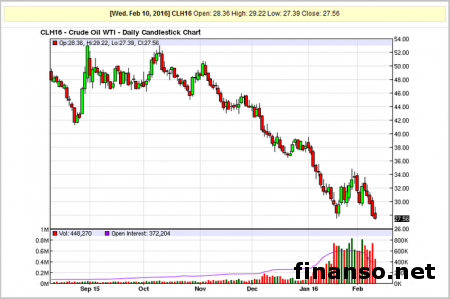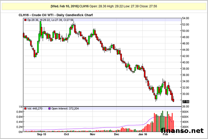 В границах продаж середины недели зафиксировано ускорение падения цены нефти на общемировом рынке. В нисходящем тренде белая техасская нефть WTI преодолела отметку в стоимости в 27,50 доллара за каждый баррель. Причины снижения стоимости нефти пытались выяснить специалисты издания «Биржевой лидер». Подробностями интересовались корреспонденты информационно-аналитического издания «Украина сегодня: Finanso.net».Вечером в середине прошлой недели после дневного роста цена черного золота стала показывать резкое падение. Примечательна обстановка тем, что одна из последних публикаций статистики по коммерческим запасам нефти оказывала поддержку стоимости нефти. По данным Минэнерго Америки, за период 29 января-5 февраля размер резервов был снижен. При этом специалисты прогнозировали рост. Энерговедомство Америки сообщает: за прошлый промежуток времени нефтяные запасы снизились на 0,7 миллиона баррелей. Вместо роста, о котором ранее вели речь специалисты, опрошенные агентством Bloomberg, после снижения размер запасов составил ровно 502 миллиона баррелей нефти. Наиболее вероятный сценарий, по мнению экспертов, рост на 3,2 миллиона единиц поставок. Одновременно в Минэнерго рассказывают о росте примерно на 1,26 миллиона баррелей масштаба запасов бензина. Запасы дистиллятов, добавив примерно 1,29 миллиона баррелей, составили почти 161 миллион баррелей. В экспертных прогнозах можно было заметить рост запасов бензина примерно на миллион баррелей с падением масштаба дистиллятов сразу на 1,5 миллиона баррелей. В публикации Минэнерго Америки содержатся данные о снижении объема добычи сразу на 0,3 процента (28 000 баррелей) каждый день. Сейчас каждые 24 часа нефтедобывающими компаниями Америки производится 9,19 миллиона баррелей энергетического носителя. Нефтяные запасы в терминале в Кушинге за семь дней выросли до 64,7 миллиона баррелей. Это демонстрирует рост общего числа запасов сразу на 0,5 миллиона. Почему нефть падает?Причиной для возобновления с новой силой снижения нефтяных цен стала публикация отчета МЭА, где содержатся отрицательные для нефтяных производителей данные. Говоря точнее, специалисты агентства утверждают: производство нефти государствами-членами ОПЕК в январе выросло. Кроме того, в отчете говорится о наличии резервных нефтяных запасов в хранилищах разных стран мира. К тому же давление на показатели цены оказывают заявления из Кувейта и Ирана. В руководстве двух государств информируют о планах в нынешнем году поднять масштабы производства углеводородной продукции. |