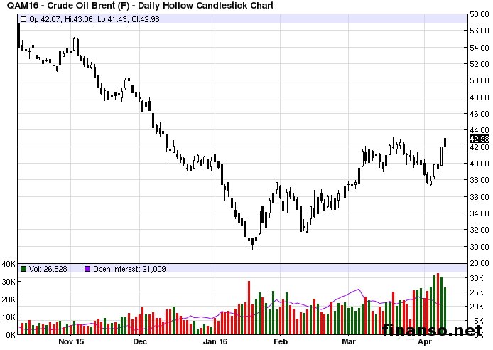 Мировые цены на нефть продолжают подниматься на фоне публикации по снижению общего числа трудящихся на буровых установках, а также перед проведением переговоров в Катаре, в период которых может быть принято решение в отношении заморозки масштабов нефтяной добычи. Таким образом, во время нынешних продаж на бирже ICE стоимость фьючерсов на нефть марки Brent в первый раз после 7 декабря прошлого года пошла дальше уровня в 43 доллара. На максимуме стоимость нефтяного барреля Brent достигла уровня в 43,06 доллара. Это примерно на 2,67 процента дальше уровня, что был признан в момент закрытия прошлых продаж. Рост цены нефти придал новый импульс укреплению российской нацвалюты. Говоря точнее, в рамках последних продаж минувшей недели на бирже в российской столице курс доллара Америки падал до уровня в 66,41 рубля, а курс евровалюты - до 75,863 рубля. Подробностями интересовались корреспонденты информационно-аналитического издания «