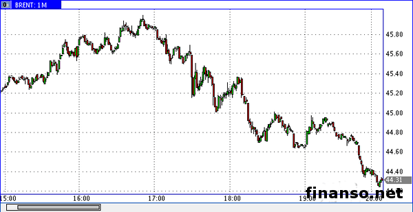 Стоимость за нефтяной баррель на британской электронной бирже ICE 9 мая составляла 44 доллара, это примерно на 3,23 процента дешевле стоимости закрытия. Как сообщают СМИ, в 18:50, по киевскому времени, цена нефти падала до 43,6 доллара, при том, что в момент открытия продаж самые завышенные котировки составляли 46,5 доллара за баррель.