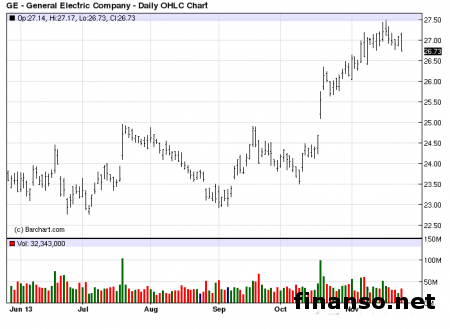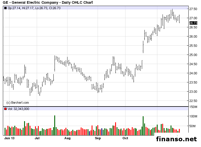 Рыночные специалисты поддерживают соглашение между компаниями.В рамках соглашения General Electric будет работать над обслуживанием и обеспечением исправной работы газовых турбин новых электростанций, расположенных в Эр-Рияде. По заявлениям руководства компаний 8 лет составит главный срок договора, но его возможно будет продлить до 25 лет. Так же на парогазовых электростанциях, согласно тому же договору, будет обслуживаться 12 газовых блоков. Аналитики брокерской компании FinFX объяснили корреспондентам интернет-издания "Украина сегодня: Finanso.net", что соглашение было подписано после заключения сделки, согласно которой General Electric продает для новой электростанции Saudi Electricity в Эр-Рияде четыре паровые и двенадцать газовых турбин. Согласно графику, приведенному ниже, можно понять, что на сегодняшний день, 26 ноября текущего года, акции компании General Electric торгуются на бирже по 26,73 за акцию, - пояснил брокер. Тренд на бирже продолжается бычий. Также брокер добавил рекомендации для трейдеров - покупки акций General Electric при каждом падении на коррекцию. |