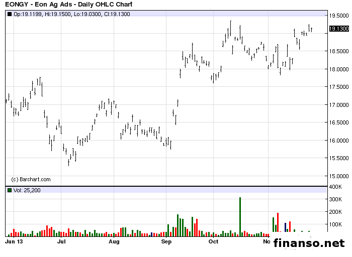 Представители самого крупного немецкого энергетического концерна E.ON сообщили о том, что уже сейчас готовится продажа актива в Италии, который находится в топе 5-ти основных генеральных компаний.Италии. Как выяснили журналисты интернет-издания "Украина сегодня: finanso.net", официальных сообщений касательно рассматриваемого вопроса не поступало, а руководство E.ON сообщило только о том, что портфель активов группа постоянно пересматривает и в ближайшем будущем сообщит о своем решении. Рыночные эксперты актив E.ON в Италии оценивают на уровне 2 млрд. евро.Учитывая то, что уровень подготовки к продаже начальный, компания может изменить решение и выбрать совершенно другой путь. На сегодняшний день итальянский актив обслуживает около 1 млн. клиентов при том что в штате компании работает как минимум 1 тыс. человек. Специалисты аналитического отдела брокерской компании Xemarkets пояснили корреспондентам издания "Украина сегодня: Finanso.net", что E.On избавляется от своего итальянского актива под давлением низкого спроса на электроэнергию и слишком высокий уровень налогов, который выставляет рынок Италии. Брокер, ссылаясь на график торгов, добавил, что на сегодняшний день, 29 ноября 2013 года, акции компании E.ON на бирже торгуются по 19,13000 доллара за акцию. Кроме того, специалисты аналитического центра Xemarkets добавили, что с сентября месяца текущего года долгосрочный тренд остается бычим. |