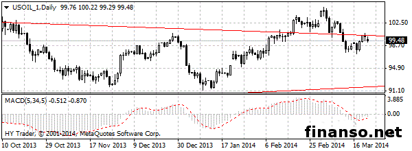 Фьючерсы «черного золота» не поднялись выше отметки 100.00 доллара за баррель. Нефть увеличилась в цене после завершения Россией процесса аннексии Крыма, чем укрепила противостояние между Западом и Российской Федерацией.