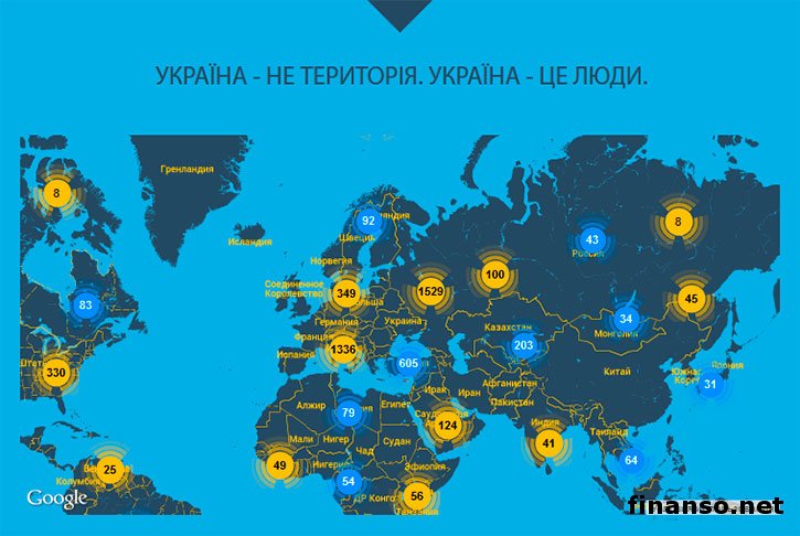 Этот проект носит всеукраинский масштаб и был запущен 24 апреля. Больше семи тысяч людей, не безразличных к будущему Украины на этот момент уже зарегистрировались в этом проекте, главная идея которого, по мнению разработчиков, сказать всему миру, что украинское государство это в первую очередь люди, гордо носящие свою национальность украинец, независимо от места своего проживания, а не территориальное образование на европейской карте. В планах разработчиков проекта - создать для каждого зарегистрированного пользователя возможность вносить соответствующие планы по дальнейшему развитию страны и пути осуществления таких планов. Тем самым активисты и разработчики будут отображать не просто смотрящих новостные программы по телевидению зрителей, а число людей во всем мире душой и сердцем болеющих за все происходящее в последнее время в Украине. В проекте участвуют люди со всего мира.Размещенная на сайте названного проекта интерактивная карта Земли отображает в онлайн-режиме число людей поддерживающих нашу страну. Желтым цветом на карте отображается число патриотов с действующим украинским паспортом, а у зарегистрированных иностранных граждан с украинскими корнями флажки окрашены в синий цвет, в целом же на карте имеется двухцветная разметка флажков. По окончании голосования за каждый из предлагаемых проектов развития страны, лучшие его идеи будут объединяться и включаться в единый проект, который в последующем попытаются воплотить в жизнь. Для открытия опции голосования в настоящий момент требуется, чтобы зарегистрировалось определенное число участников, поэтому она пока остается недоступной. В виде интернет-магазина отображается соответствующая материальная поддержка уже названного проекта, которая изображает самую разнообразную украинскую символику. Это продукция компании ProstoPrint, в спектре товаров которой здесь можно приобрести одежду, различные сувениры и подарки, чехлы для разных телефонов и гаджетов. |