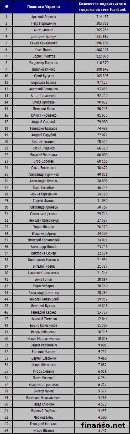 В Facebook определены ТОП-64 аккаунта политиков Украины января 2015-гоКатегория: Технологии