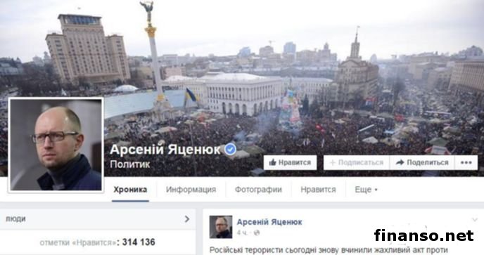 Рейтинг популярности общественных деятелей и политиков интересует украинских граждан, обеспокоенных нестабильным положением в своей стране и переживающих сложные времена, а одним из критериев этого рейтинга является, по мнению аналитиков, популярность политдеятелей в соцсетях. Об этом пишут корреспонденты издания «Украина сегодня: Finanso.net».По числу подписчиков, или на странице пользователя самой большой и очень популярной среди пользователей сети «Фейсбук» (более 1,32 миллиарда пользователей) изданием «Биржевой лидер» определялось ТОП наиболее популярных среди украинцев аккаунтов в этой сети. ТОП самых популярных политиков Украины в социальной сети Facebook.Руководитель украинского правительства А. Яценюк удерживает лидерство в указанном рейтинге наиболее популярных украинских политиков, занимая до этого ряд важных политических постов, таких как глава украинского МИД, министр экономики и руководитель украинского парламента. Мыслями и постами этого политика интересуются больше 314 тысяч пользователей. Глава Украинского государства П. Порошенко занимает по популярности второе место в этом рейтинге, его жизнью и деятельностью интересуется больше 303 тысяч украинцев, пользователей соцсети «Фейсбук». Главе украинского МВД, А. Авакову, находящемуся в течение нескольких месяцев на высоких позициях этого рейтинга по числу своих подписчиков в сети Фейсбук, принадлежит третья строчка. Более 265 тысяч пользователей интересуются его жизнью и деятельностью. Военному эксперту Д. Тымчуку принадлежит по популярности четвертая позиция этого рейтинга, ежедневными сводками и обновлениями страницы от группы «Информсопротивление» которого интересуются 231662 пользователя «Фейсбук». Теперь уже нардеп и самый читаемый руководитель добровольческого батальона «Донбасс» C. Семенченко заключает пятерку лидеров указанного рейтинга со 196803 подписчиками. Последующие места в этом рейтинге занимают: - лидер Радикальной партии Украины О. Ляшко (168101 подписчик; - замглавы Днепропетровской ОГА, украинский журналист, бизнесмен и адвокат Б. Филатов (122073 подписчика); - активист Евромайдана В. Парасюк (110570 подписчиков); - лидер украинской политпартии УДАР В. Кличко (108642 подписчика); - руководитель издания «Цензор НЕТ» Ю. Бутусов (105805 подписчиков); - руководитель информотдела «Правого сектора» Б. Береза (97125 подписчиков); - украинский нардеп А. Гриценко (93883 подписчика); - депутат украинского парламента О. Оробец (90822 подписчика); - лидер «Правого сектора», руководитель украинской националистической организации «Тризуб» Д. Ярош (90213 подписчиков); - лидер партии «БЮТ» Ю. Тимошенко (81629 подписчиков). |