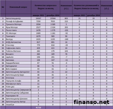 Аналитики журнала деловых людей «Биржевой лидер» из раздела «Новости поисковой системы Яндекс» провели мониторинг и определили, какие автосервисы в Москве и Московской области являются самыми популярными и востребованными. Рейтинг аналитики составляли, основываясь на таких двух показателях: Количество введенных запросов в поисковой системе Яндекс на протяжении месяца (регионом поиска была Российская Федерация). Популярность той или иной компании в средствах массовой информации, количество упоминаний о них в интернет-изданиях в рубрике Яндекс.Новости за месяц.