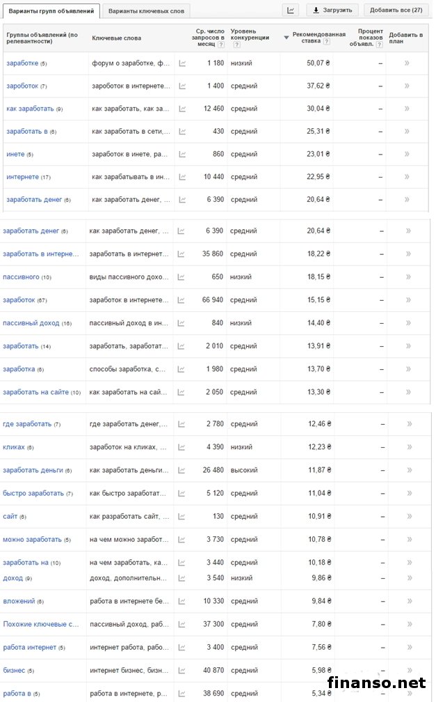 Контекстная реклама - это довольно специфический тип рекламной деятельности. В случае выбора этого вида рекламы оплата идет не за общее число показов рекламного объявления, а конкретно за число кликов по нему пользователями системы поиска. При этом демонстрируется это объявление не при любых запросах. Оно может быть показано только при тех запросах, что указаны были самими же рекламодателем. Таким образом, получается, что сфера интересов таких запросов непременно обязана пересекаться с тематикой рекламируемой услуги или же товара. Подробностями интересовались корреспонденты издания «Украина сегодня: Finanso.net». Выходит, контекстную рекламу видят исключительно те пользователи Глобальной сети, что ввели соответствующий запрос в одной из существующих систем поиска, которые дают возможность рекламировать услуги или товары именно таким контекстным методом. «Для четкого определения соответствия рекламного материала на самой странице онлайн-ресурса применяется принцип ключевых слов, на которые она, собственно, ориентируется», - констатируют журналисты информационного портала «Биржевой лидер». Какие именно ключевые слова в тематике «пассивная прибыль» считаются наиболее дорогими в Google Adwords? Ответ на этот вопрос попытались отыскать аналитики журнала «Биржевой лидер». Цена ключевых слов в системе Google Adwords по теме «пассивный доход».Следует отметить, что цена каждого клика по контекстной рекламе для потенциальных рекламодателей, SEO-специалистов зачастую является ключевым показателем для формирования непосредственного бюджета самой кампании. По теме «пассивный доход» в Google Adwords наиболее известными в числе активных российских пользователей сети, а также наиболее дорогостоящими считаются по праву такие запросы: - заработке; - как заработать; - заработок; - заработать в; - интернете; - инете; - заработать денег; - пассивного; - заработать в интернете; - заработок; - пассивный доход; - заработка; - заработать; - заработать на сайте; - кликах; - где заработать; - заработать деньги; - сайт; - быстро заработать; - можно заработать; - доход; - заработать на; - вложений; - бизнес; - работа интернет; - работа в. В то же самое время стоимость таких запросов находится в границах 50,07- 5,34 американских доллара за каждый отдельно взятый клик по показателям на 7 апреля текущего года. Также специалисты «Биржевого лидера» выделили в числе популярных блоков объявлений такие слова: 1.Заработке (5 ключевых слов в данной тематике в Google Adwords): - форум о заработке; - форум о заработке в Интернете; - форумы о заработке; - форумы о заработке в интернете. 2.Заработок: - заработок в интернете; - заработок в инете; - интернет заработок; - заработок; - дополнительный заработок. 3.Как заработать: - как заработать; - как заработать через интернет; - как заработать миллион; - как заработать миллион долларов; - как заработать дома. |