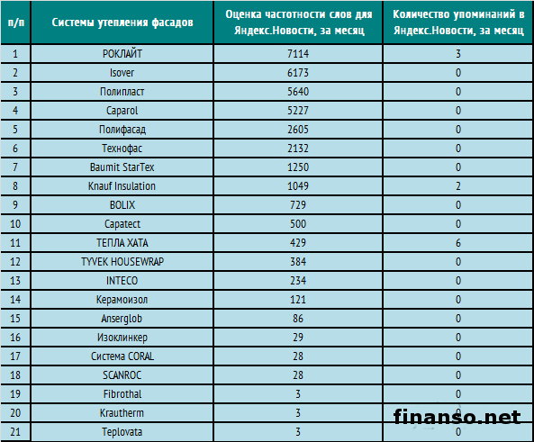 Утепление фасадов дает возможность не только экономить на отоплении жилища. В летний период времени она работает в качестве просто отличного регулятора температуры, не давая днем стенам нагреваться, а ночью предотвращает их остывание. В подобных домах всегда зимой уютно и тепло, а в летнее время даже в жару такие дома радует легкой прохладой. Помимо прочего, нужно сказать и о том, что такая система защищает стены от растрескиваний и выветривания, не говоря уже о том, что такой дом станет намного красивее и ярче, привлекательнее в случае использования утепления фасадов. Подробностями интересовались корреспонденты издания «Украина сегодня: Finanso.net». На рынке государства можно встретить огромное множество подобного типа материалов, которые дают отличную возможность утеплить любой фасад, принцип работы у всех практически один и тот же. В связи с этим бывает достаточно трудно четко определиться с конкретным товаром. Какие именно системы утепления фасадов пользуются в настоящее время самой большой популярностью у российских граждан? С этим вопросом разбирались аналитики портала по экономике и предпринимательству «Биржевой лидер». Isover и Роклайт – наиболее известные системы утепления фасадов в сети.Рейтинг известности систем утепления фасадов был сформирован на базе таких критериев: - оценка частотности слов для системы поиска Яндекс.Директа за месяц, что рассчитана с помощью сервиса wordstat.yandex.ru; - частота упоминаний о системах утепления фасадов, что рассчитана с помощью агрегатора news.yandex.ru (Яндекс.Новости); - регион анализа (то есть поиска в сервисе wordstat.yandex.ru) – РФ. Самые популярные системы утепления фасадов в числе россиян в сети: - плиты «Роклайт» (7 114 запросов за месяц в Яндекс) используются в конструкциях скатных кровель. Утеплитель сильно снижает перепады температур внутри самого здания, имеет неплохую термовиброустойчивость и легкий вес. Также этот материал достаточно долговечен и стоек к воздействию разных микроорганизмов; - «Isover» (6 173 запросов за месяц в Яндекс) – это отличное решение для самых труднодоступных участков редко эксплуатируемого чердака. К основным преимуществам можно отнести высокоэффективную теплоизоляцию; укладку с помощью специальной задувной машины, производится в виде сухой смеси россыпью, всегда готова к использованию. - «Полипласт» (5 640 запросов за месяц в Яндекс) – это специальная система утепления фасадов, позволяющая экономить электричество. Далее следуют системы утепления фасадов: - Caparol – 5 227; - Технофас – 2 132; - Полифасад – 2 605; - Baumit StarTex – 1 250; - Bolix – 729; - Knauf Insulation – 1 049; - Capatect – 500. Аутсайдерами рейтинга популярности в этот раз стали: - Изоклинкер – 29 запросов; - Система CORAL – 28; - SCANROC – 28; - Fibrothal – 3; - Krautherm – 3; - Teplovata – 3. |