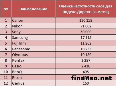 Несмотря на то что большое количество современной техники имеет функцию фотоаппарата, непосредственно фотоаппараты всегда пользовались большой популярностью. Некоторые предпочитают использовать фотоаппарат отдельно, для получения снимков высокого качества, а некоторые зарабатывают деньги на проведении разных фотосессий, для которых просто необходим фотоаппарат высокого качества. В связи с этим бренды, которые производят фотоаппараты, всегда были и остаются очень популярными, как и фирмы, которые их продают.Какие же самые известные бренды фотоаппаратов, а также их фирмы-продавцы в Интернете, рассказывают корреспонденты издания «Украина сегодня: Finanso.net». «Canon» и «Nikon» стали самыми известными брендами фотоаппаратов среди пользователей Интернета.Для определения известности брендов фотоаппаратов используется поисковая система Яндекс, рейтинг по которой составлен на основании двух показателей: - сервису wordstat.yandex.ru, для определения количества упоминаний за последний месяц; - период – февраль 2014 года. ![]() Согласно данных таблицы, самым известным брендом фотоаппаратов стал Canon, с показателем 120 158 запросов в Яндексе за последний месяц. На втором месте расположился Nikon, с количеством запросов 71 002, а на третьей позиции оказался бренд Sony - 50 000 запросов за февраль месяц в поисковой системе Яндекс. Аутсайдером рейтинга стал Genius с показателем всего 160 запросов в поисковике Яндекс. Рейтинг популярности интернет-магазинов, продающих фотоаппараты, за февраль 2014 года.Аналитики журнала для трейдеров и инвесторов «Биржевой лидер» составили рейтинг организаций на основании двух объективных показателей: - количество вводимых запросов в поисковую систему Яндекс за месяц; - количество упоминаний той или иной компании в электронных СМИ агрегатора новостей Яндекс.Новости. Согласно данному рейтингу самым известным интернет-магазином, продающим фотоаппараты, стал «М Видео», по которому пользователи всемирной паутины сделали 2 247 222 запроса в поисковой системе Яндекса в феврале месяце. Второе место получил магазин «Эльдорадо» с 2 091 766 запросами в Яндексе. Это достаточно большая сеть магазинов электроники, которая была основана еще в 1994 году, ассортимент компании начисляет белее 20 тысяч наименований. На третьем месте оказался интернет-магазин «Юлмарт», по которому было сделано 1 266 282 запроса в поисковике Яндекс. С помощью современного программного обеспечения, а также инновационной технологии у магазина прекрасно получается совмещать преимущества традиционного и интернет-магазина, при этом устранив их недостатки. |