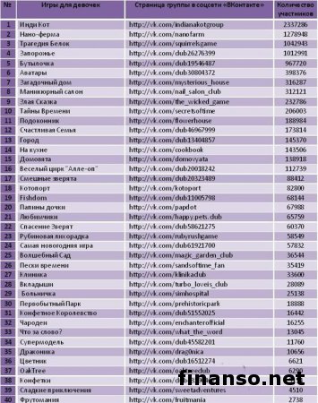 Названы 40 самых популярных игр для девочек "Вконтакте"Категория: Технологии