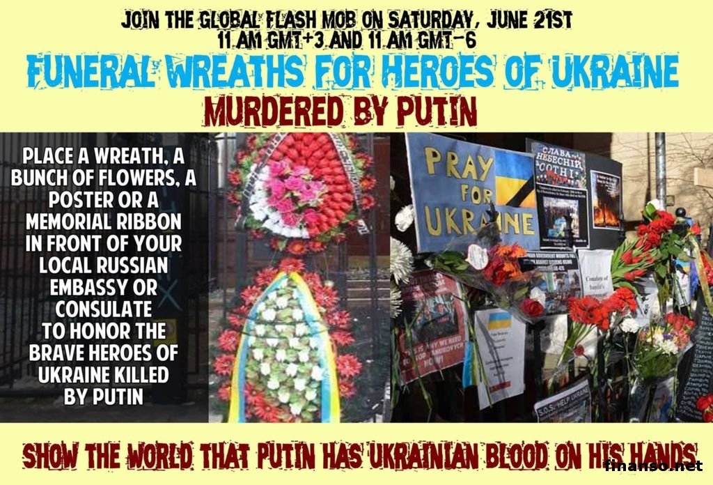 Как сообщает ряд СМИ, акцию протеста поддержали многие страны и города мира, в частности, венки начали приносить жители Торонто, Ванкувера, Гааги, Вильнюса, Нью-Йорка, Брюсселя, Варшавы, а также многих других городов. По сообщениям очевидцев, в городе Киев акция началась в 11:00. Организаторы акции сообщили о том, что фактически Российская Федерация начала войну против Украины, поэтому сейчас необходимо остановить Владимира Путина иначе он может совершить еще множество провокаций. Они также задаются вопросом: как много еще смертей нужно, для того чтобы признать, что Россия начала воевать, а не просто пожелала вернуть исконно российские территории. Было отмечено, что все то, что сейчас происходит, является очень большим «разводом», который сейчас осуществляет правительство Российской Федерации. Одновременно с этим организаторы акции призвали НАТО приобрести боевые корабли Mistral, которые Франция в скором времени намерена продать российским властям, и применить санкции максимального уровня жесткости. Что еще требуют активисты?Среди других требований активистов: предоставление армии Украины новых спасательных средств, в частности средства личной защиты и медицинские принадлежности, кроме того, ожидается, что страны Запада в ближайшее время прекратят ведение какого-либо бизнеса или сотрудничества с Россией, в частности, в сферах модернизации вооружения, армии, полиции, что способствует российской экспансии. Также активисты призвали ввести безвизовый режим с Украиной, и расследовать действия компании «Газпром», которые нарушают антимонопольное законодательство Европейского союза и нормы ВТО. В то же время требуется полный контроль всех средств, которые экспортируются с Российской Федерации и Беларуси, а также отмены виз, всех ведущих антиукраинских и антизападных пропагандистов путинского режима. |