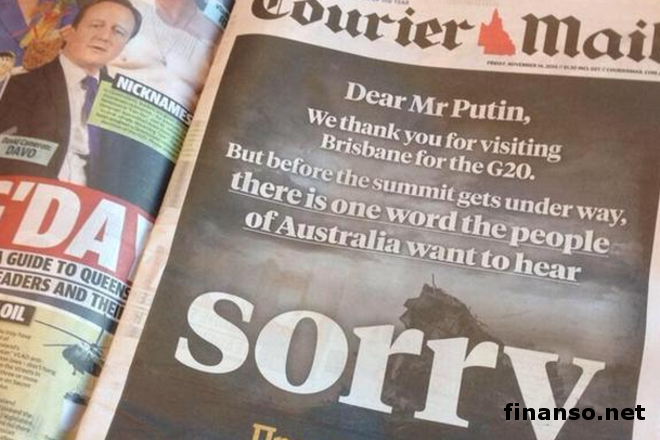 Как сообщают корреспонденты "Украина сегодня: Finanso.net", во время саммита могут договориться о принципах работы нового международного агентства, которое будет иметь такую цель. Отмечается, что само агентство пока создаваться не будет. При этом ситуация на территории Украины, вмешательство Российской Федерации и ее "газовые войны" не значатся на официальной повестке дня данного саммита, но эти вопросы будут активно обсуждаться во время встречи руководства Европейского союза и президента США Барака Обамы в воскресенье, а также в целом во время проведения двухсторонних встреч, которые будут проходить в течение двух дней после продолжения саммита в Брисбене. В саммите "Большой двадцатки" принимает участие и президент Российской Федерации Владимир Путин, хотя изначально были слышны призывы относительно того, чтобы не приглашать его, поскольку раньше Россию исключили из G8 из-за ее действий по отношению к Украине. Но австралийская сторона, которая принимает саммит, приняла решение все-таки отправить Владимиру Путину приглашение, чтобы, как они ожидают, он почувствовал дипломатическое давление с требованием изменить отношение к Украине. Газета требует публичных извинений.Напомним, что ранее австралийская газета The Courier Mail на первой полосе потребовала от президента Российской Федерации публичных извинений перед народом Австралии за сбитый "Боинг". В сообщении газеты отмечалось, что она выражает благодарность Путину за визит в Брисбен на саммит "Большой двадцатки", но жители Австралии ждут от него перед началом саммита одного слова "простите". Такое сообщение было напечатано на фоне обломков сбитого "Боинга". Ранее перед началом саммита G20 граждане Украины, которые проживают в Австралии, были намерены встретить президента Российской Федерации Владимира Путина массовой акцией протеста. |