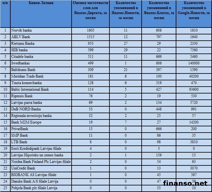 Названы 25 популярнейших банков Латвии в ИнтернетеКатегория: В мире