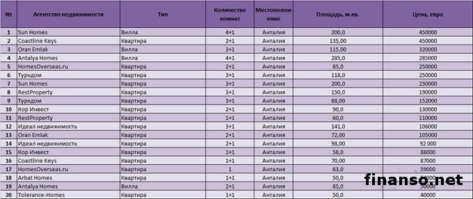 Российские инвесторы всегда были на особом счету в самых разных уголках мира. Они не скупятся покупать дорогую недвижимость, инвестировать большие средства в жилье. Именно поэтому виден серьезный рост числа агентств жилья в этом государстве, специализирующихся именно на продаже, аренде недвижимости в Турции. Об этом рассказывают журналисты издания «Украина сегодня: Finanso.net». Какие наиболее известные турецкие агентства недвижимости, что предлагают к продаже и съему апартаменты Анталии, решили узнать журналисты издания «Биржевой лидер». Рейтинг популярности агентств, предлагающих апартаменты в Турции, у россиян за март.Рейтинг издания «Биржевой лидер» опирается на главные критерии в системе поиска Яндекс: - оценка частотности слов для системы Яндекс.Директа за 30 дней, которая рассчитывается при помощи сервиса wordstat.yandex.ru; - число упоминаний за то же самое время об агентствах недвижимости в онлайн СМИ, электронных информагентствах, которое рассчитывается посредством агрегатора Яндекс.Новости (news.yandex.ru); - регион оценки – Россия. Таблица показывает, что: - место лидера на этот раз заняло агентство недвижимости, работающее в РФ, предоставляющее отличную возможность приобрести, снять турецкие апартаменты - группа компаний «Континент». Именно по ней за месяц было произведено самое большое число запросов в системе поиска Яндекс - 380. Фирма занимается продаже жилой и коммерческой недвижимости в Мерсине на берегу Средиземного моря. Риэлтор оказывает весь спектр услуг; - вторая строчка рейтинга занята в марте месяце фирмой Sun Homes. Компания получила 267 запросов в системе поиска Яндекс. Фирма работает на рынке довольно длительное время. Она специализируется на продаже, аренде турецкой недвижимости, а также продаже участков земли, аренде, продаже коммерческой недвижимости в этом государстве; - ТОП-3 лидеров рейтинга на этот раз закрывает компания «Идеал недвижимость». По ней за месяц пользователи Сети успели произвести в общей сложности 148 запросов. Это агентство недвижимости Турции в 2012 году стало обладателем награды «Европейская недвижимость» за победу в номинации «Лучшее агентство недвижимости Турции». Далее участники рейтинга расположились следующим образом: - HomesOverseas.ru; - RestProperty; - AZPO; - Кор Инвест; - Antalya Homes; - Tolerance-Homes; - Риэлтор-Турция; - KFG Invest; - Zoom Property; - Rental Real Estate; - Ataberk; - TurkHome; - KURTSAFIR; - Coastline Keys; - Arbat Homes; - ALTOP Real Estate; - ELKAS Real Estate. |