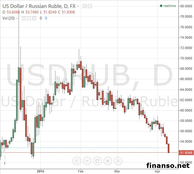 В минувшую среду, 8 апреля 2015 года, российская национальная валюта в очередной раз многих удивила. По результатам прошедших торгов на Московской бирже американская валюта стала дешевле сразу на 1,5 рубля. В первый раз за этот год доллар оказался ниже отметки в 54 рубля. Довольно заметно снизился в отношении российской нацвалюты также и евро, упав до ступени в 58 рублей. В итоге к концу дня на Московской бирже за 1 доллар давали не более 53,6 рубля, а европейская валюта стоила 58 рублей. В общей же сложности с самого начала нынешнего месяца российский рубль вырос в стоимости на 7 процентов в отношении к американскому доллару, на 6 процентов - к евро. Что обо всем этом думают специалисты, решили разобраться журналисты издания "