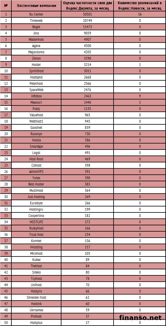 Наш мир сложно себе даже представить без скоростной передачи данных. Сейчас наиболее значим Интернет, считающийся поистине незаменимой частью жизни. Большая часть компаний работают в Сети, находя там партнеров и клиентов, имея доступ к информбазам, быстрой коммуникации, что играет в наше время немаловажную роль. Без налаженной сети коммуникации достаточно сложно бывает порой просто работать. Помимо самого выхода в Глобальную сеть, работники фирмы обязаны иметь возможность общаться друг с другом в онлайн-режиме. А это заставляет владельца организовывать информационную систему за счет сторонних организаций. Такой комплекс работ возложен на хостинговую фирму. «Хостинг – это предоставление персонального хранилища информации, места на сервере, что все время имеет доступ в Интернет», - рассказывают журналисты портала «Украина сегодня: Finanso.net». Какие именно хостинговые фирмы наиболее известны в настоящее время у россиян? Ответ на этот вопрос уже отыскали специалисты информационно-аналитического издания по экономике «Биржевой лидер». Рейтинг известности хостинговых фирм в Сети.Рейтинг опирается на два объективных критерия в системе поиска Яндекс: - оценка частотности слов для системы Яндекс.Директа за 30 дней, что рассчитана при помощи специального сервиса wordstat.yandex.ru; - число упоминаний за то же самое время о фирмах в интернет-СМИ, электронных информагентствах, что рассчитана посредством агрегатора Яндекс.Новости (news.yandex.ru); - регион поиска – РФ: Из данных полученной таблицы можно прийти к выводам о том, что самыми известными у россиян считаются такие компании: 1. Фирма Ru-Center (50 501 запрос в системе поиска Яндекс за месяц) - регистратор доменов, хостинг; 2. Фирма Timeweb (20 749 запросов в Яндексе за последние 30 дней) - золотой технопровайдер Intel, золотой хостинг-партнер 1С-Битрикс; 3. Консалтинговая фирма Beget (11 473 запроса в системе поиска Яндекс за месяц). Далее в рейтинге разместились такие фирмы: - Jino; - Masterhost; - Agava; - Majordomo; - Zenon; - Hoster; - Sprinthost; - Hostland; - Peterhost; - SpaceWeb. |