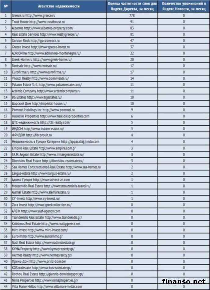 Для инвесторов из России греческая недвижимость становится все более привлекательной. И это даже несмотря на результаты разразившегося в государстве кризиса. Статистика запросов в системе поиска Яндекс тоже это ярко показывает, ведь их общее число по ключевой фразе «Недвижимость Греции» становится все выше. Положительная динамика свидетельствует о возрастающем потенциале спроса. Однако пиар-активность действующих на рынке Греции агентств жилья не столь высока, что отрицательно сказывается на их известности, заставляет инвесторов из РФ самостоятельно искать посредников для оформления сделок. Подробностями интересовались корреспонденты издания «Украина сегодня: Finanso.net».Оценить потенциал риэлторских фирм помогают рейтинги от специалистов информационно-аналитического издания «Биржевой лидер». В апреле лидерами стали Trust House и Greece.ru.Рейтинг издания «Биржевой лидер» основан на двух критериях в системе поиска Яндекс: – оценка частотности слов для системы поиска Яндекс.Директ за месяц, что рассчитана при помощи сервиса wordstat.yandex.ru; – число упоминаний за это время об агентстве жилья в интернет-СМИ, электронных информагентствах, что рассчитано с помощью агрегатора Яндекс.Новости (news.yandex.ru); – регион оценки - РФ. 1. В апреле 2015 года лидер популярности в Сети среди агентств греческой недвижимости - фирма Greece.ru, которая заработала интерес со стороны 778 пользователей Интернета из Российской Федерации. Больше десяти лет компания предлагает иностранным клиентам греческую недвижимость. Преимущество фирмы - широкая база данных, куда вносятся разные объекты жилой и коммерческой недвижимости. 2. Второе, не менее почетное место досталось на этот раз фирме под названием «Trust House». У нее за месяц зафиксирован 91 запрос поиска. Фирма оказывает в Греции услуги покупателям жилья. Команда высококвалифицированных экспертов консультирует по разным вопросам, что связаны с покупкой коммерческих и жилых объектов. 3. Фирма Albatros оказалась на третей позиции с результатом в 83 запроса в апреле из РФ. Данная компания работает в сфере строительства, продажи греческой недвижимости более 16 лет, предлагает различные варианты на любой бюджет и вкус, индивидуальное строительство домов, жилого комплекса, коммерческой недвижимости в Греции. Далее в рейтинге расположились такие фирмы: - Real Estate Services; - Gordon Rock; - Greece Invest; - ADRIONIKA; - Greek-Home.ru; - Rentsale; - Eurofirma.ru. |