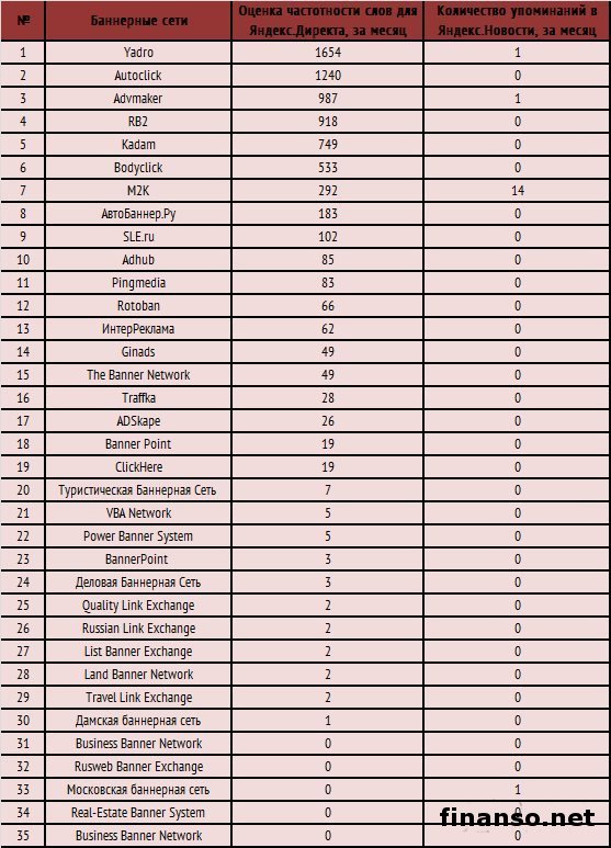 Современный мир нельзя даже представить себе без глобальной сети Интернет, что считается по праву неотъемлемой частью жизни российских граждан. Основная часть компаний работает в Интернете, находя с его помощью клиентов и партнеров. Исходя из данного факта, широкое распространение в России получили баннерные сети, помогающие обмениваться рекламными, текстовыми, графическими блоками и баннерами. Подробностями интересовались корреспонденты издания «Украина сегодня: Finanso.net».В то же время за демонстрацию чужих баннеров на сайте каждый участник сети получает долю показов своего баннера на сайтах иных участников минус процент комиссии, что применяет владелец самой сети. В личном желании привлечь максимальное число участников, захватить основную часть рынка баннерного обмена, владельцы сетей пришли к новому предложению порталам достаточно привлекательных условий участия. Правила баннерных сетей России намного мягче правил основной массы иностранных сетей, большая часть из коих не практикует вообще накопление показов, перевод показов между самими счетами участников. Какие баннерные сети в настоящее время пользуются самой большой популярностью у российских граждан? Ответ на этот вопрос активно искали аналитики информационного издания по экономике и предпринимательству «Биржевой лидер». Рейтинг известности сетей в Интернете.Рейтинг издания «Биржевой лидер» опирается на два вполне объективных критерия в системе поиска Яндекс: - оценка частотности слов для системы поиска Яндекс.Директа за один месяц, что рассчитана при помощи сервиса wordstat.yandex.ru; - число упоминаний за то же самое время о сетях в онлайн-СМИ, электронных информагентствах, что рассчитано с помощью агрегатора Яндекс.Новости (news.yandex.ru); - региональность поиска – РФ: Из данных полученной таблицы становится ясно: Первое место – «Yadro» (1 654 запроса за месяц в Яндексе) – самая большая баннерная сеть. Сейчас эта сеть поддерживает порядка 55 автономных сетей десяти форматов. Второе не менее почетное место - «Autoclick» (1 240 запросов за месяц в Яндексе) – это автобаннерная сеть. Порталы-участники AutoClick посвящены исключительно автотематике. Целевая аудитория - посетители порталов автонаправленности. Третье место - «Advmaker» (987 запросов за месяц в Яндексе) - это большая баннерная сеть, которая предлагает зарабатывать разными способами. Далее располагаются такие сети: - RB2 – 918 запросов за месяц в Яндексе; - Kadam – 749 запросов за месяц в Яндексе; - Bodyclick – 533 запроса за месяц в Яндексе; - М2К – 292 запроса за месяц в Яндексе; - АвтоБаннер.Ру – 183 запроса за месяц в Яндексе; - SLE.ru – 102 запроса за месяц в Яндексе. |