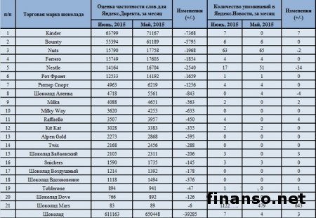 Известен ТОП популярных марок шоколада за июнь 2015 годаКатегория: В мире