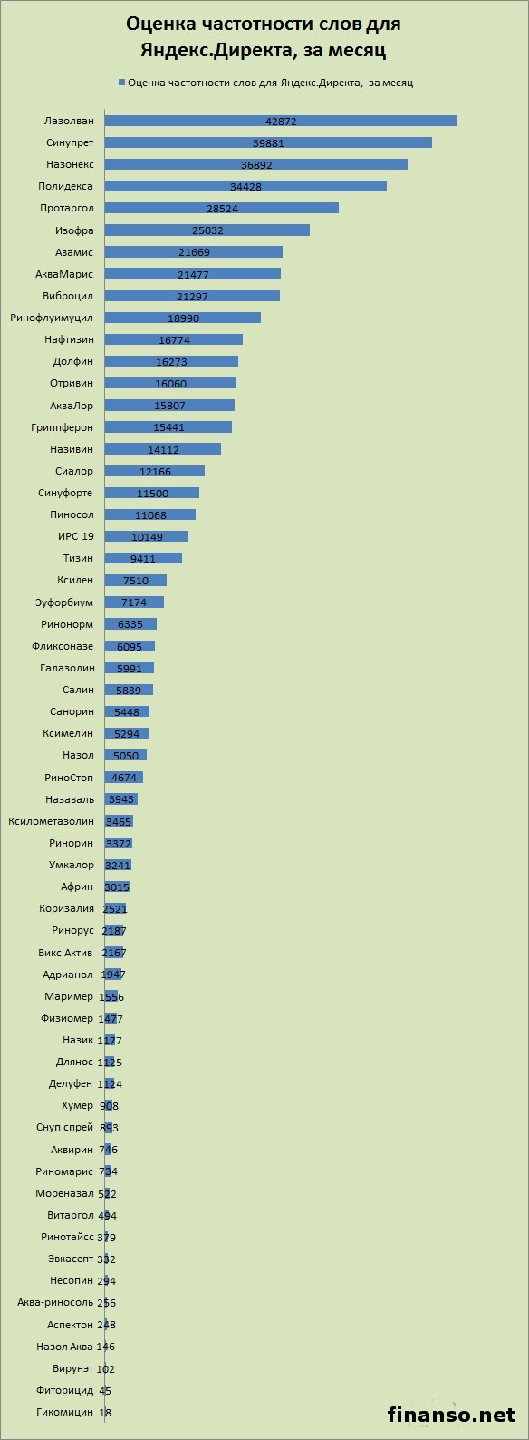 Одно из самых известных безрецептурных средств – капли от насморка, которые часто используются гражданами, особенно в осенне-зимний период. Таких препаратов есть множество. В то же время жидкие препараты отличаются направленностью действия, составом, принципом, эффективностью против отдельно взятых болезней, иными характеристиками. Подробностями интересовались корреспонденты издания «Украина сегодня: Finanso.net».Для того чтобы сделать правильный выбор в пользу самых результативных каплей от насморка, необходимо четко понимать: какую именно они выполняют функцию. Всего на рынке России презентовано 5 ключевых групп – это сосудосуживающие, увлажняющие, комбинированные, фитопрепараты и противовирусные. Какие лекарственные средства от насморка в настоящее время считаются наиболее известными у россиян? С этими вопросами разбирались специалисты издания «Биржевой лидер». Лазолван и Синупрет – лидеры популярности в числе лекарств от насморка в сети.Рейтинг известности в числе россиян был сформирован на основании новых базовых критериев: - Общее число упоминаний за то же самое время о том или ином лекарстве в электронных масс-медиа, что рассчитано при помощи агрегатора Яндекс.Новости (news.yandex.ru); - оценка частотности слов для системы поиска Яндекс.Директ за месяц, что рассчитано с помощью сервиса wordstat.yandex.ru; - регион оценки - РФ. Из табличных данных можно сделать выводы, что самые известные у россиян считается следующие лекарства от насморка: - Лазолван (42 872 запроса за месяц в Яндексе) – отхаркивающий и муколитический препарат. Активный ингредиент препарата – Амброксол – поднимает секрецию в дыхательных путях, стимулирует цилиарную активность, усиливает продукцию легочного сурфактанта. Такие эффекты ведут к усилению тока, транспорта слизи, что явно улучшает проходимость дыхательных путей, облегчает кашель и отхождение мокроты. - Синупрет (39 881 запрос за месяц в Яндексе) помогает при хронических и острых воспалениях придаточных пазух носа (синусит, гайморит), воспалении дыхательных путей (бронхит, трахеит). Оказывает муколитическое, противовоспалительное и отхаркивающее действие. - Назонекс (36 892 запроса за месяц в Яндексе) оказывает противоаллергическое и противовоспалительное действие. Механизм действия основан на торможении высвобождения медиаторов воспаления, развитии немедленной аллергической реакции. Аутсайдеры в числе лекарств от насморка по запросам в Яндексе стали: - Ринотайсс – 379 запросов; - Эвкасепт – 332 запроса; - Несопин – 294 запроса; - Аква-риносоль – 256 запросов; - Аспектон – 248 запросов; - Назол Аква – 146 запросов; - Вирунэт – 102 запроса; - Фиторицид – 45 запросов. |