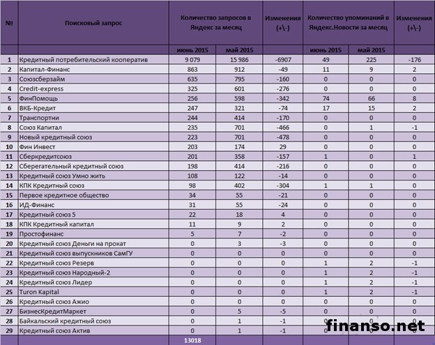 Кредитный союз считается одной из самых привлекательных финансовых организаций для граждан и представляет собой некоммерческую альтернативу банковским финансовым учреждениям. Работа кредитных союзов в первую очередь направлена на фактическое предоставление взаимопомощи, финансовой поддержки гражданам. В Российской Федерации к настоящему моменту времени работает примерно 2500 кредитных союзов. Они пользуются огромным успехом, потому что способны давать ссуды клиентам с отрицательной кредитной историей в банковских учреждениях. Подробностями интересовались корреспонденты информационно-аналитического издания «Украина сегодня: Finanso.net». Какие именно кредитные союзы оказались самыми известными среди российских граждан? Ответ на этот вопрос искали журналисты информационно-аналитического издания по экономике и рынку Форекс «Биржевой лидер». Рейтинг известности кредитных союзов у россиян за июль 2015 года.Рейтинг был сформирован на основании двух прозрачных и объективных показателей, которые помогут в вопросе выбора организации. Это: - общее количество вводимых запросов в систему поиска Яндекс за последний месяц (регион поиска – Россия); - общее количество упоминаний одной или другой компании в масс-медиа, то есть в интернет-изданиях агрегатора новостей Яндекс.Новости. Самые известные кредитные союзы РФ: - Кредитный потребительский кооператив. По этому кооперативу было сделано самое большое количество запросов (9 079) в системе поиска Яндекс в июле нынешнего 2015 года. - Капитал-Финанс – 863 запроса в поисковой системе Яндекс; - Союзсберзайм – 635 запросов в поисковой системе Яндекс. Аутсайдерами признаны следующие участники рейтинга: - Кредитный союз Деньги напрокат; - Кредитный союз Резерв; - Кредитный союз выпускников СамГУ; - Кредитный союз Народный-2; - Turon Kapital; - Кредитный союз Лидер; - Кредитный союз Ажио; - Байкальский кредитный союз; - БизнесКредитМаркет; - Кредитный союз Актив. В каких странах запрос «кредитный союз» стал самым популярным в июле 2015 года?Самый большой интерес к запросу «кредитный союз» в системе поиска Яндекс в июле текущего года проявляли жители следующих государств: - Российская Федерация - 0,03 запроса из расчета на 1000 человек; - Украина - 0,03 запроса из расчета на 1000 человек; - Беларусь - 0,02 запроса из расчета на 1000 человек; - Кыргызстан - 0,01 запроса из расчета на 1000 человек, по данным брокера Хантек Маркет. |