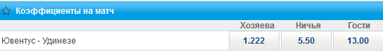 «Ювентус» против «Удинезе»: букмекеры в чемпионах не сомневаютсяКатегория: В мире
