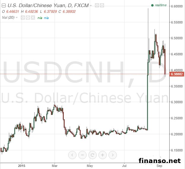 Курс китайской национальной валюты в настоящее время упал против валюты Америки уже после того, как китайским Народным банком был снижен справочный курс китайского юаня примерно на 0,22 процента, до уровня в 6,3772 юаня за каждый . Данный показатель располагается наиболее близко к показателю 9 сентября - 6,3778 юаня за каждый . Это сильное падение справочного курса считается наиболее серьезным с августовской девальвации нацвалюты страны. Подробностями интересовались корреспонденты информационно-экономического издания «