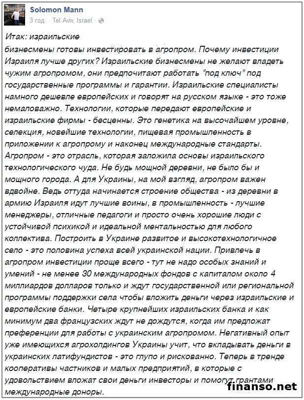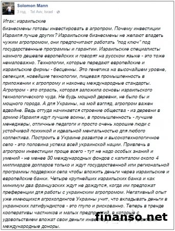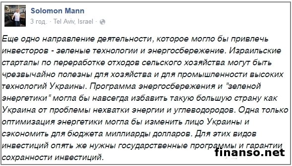 Уроки для Украины по привлечению инвестиций Израиля – «Solomon Mann»Категория: В мире