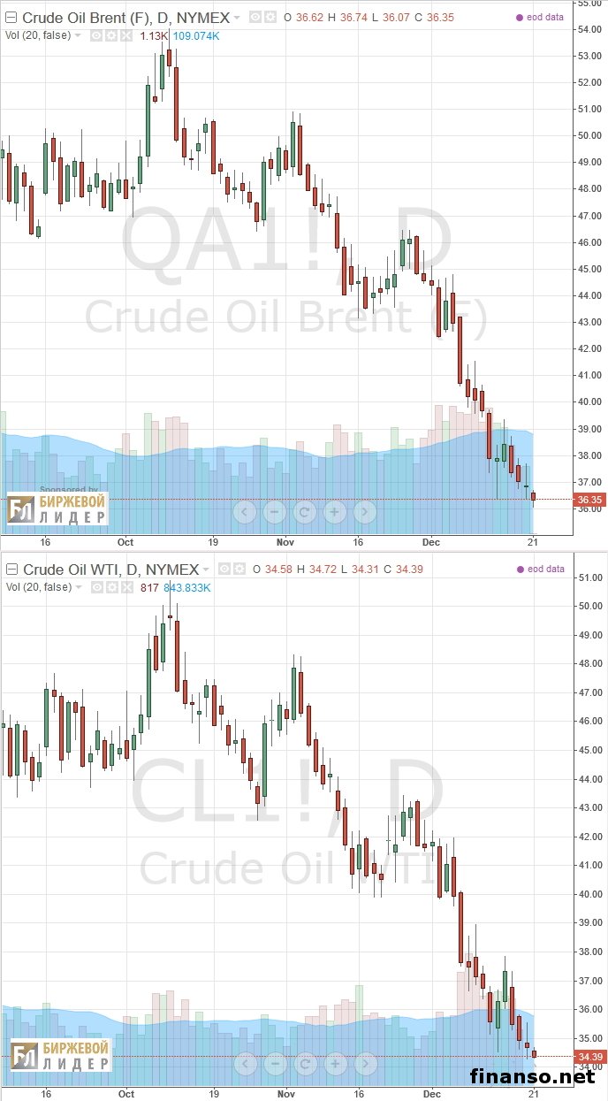 Котировки нефти в начале текущей недели в очередной раз обновили антирекорды цен – цены на сырье продолжают падать в связи с погодными условиями, которые снижают спрос, перепроизводства и, как результат этого, избытка предложения, в связи с решением руководства Америки относительно повышения основной ставки. Более детально о ценовом снижении, вероятном будущем развитии обстановки на рынке нефти пытались узнать аналитики портала «Украина сегодня: Finanso.net». По сообщениям портала по экономике «Биржевой лидер», стоимость нефти и дальше будет обновлять антирекордные уровни. Говоря точнее, после старта торгов на Сингапурской бирже в последние дни цены нефти бренда Brent просели до уровня в 36,32 доллара, после этого слегка укрепились – до ступени в 36,49 доллара. Техасская смесь нефти WTI просела на торгах вчерашнего дня до уровня в 34,53 доллара США, обновив антирекордные уровни, в сравнении с 2008 годом. «Как рассказывает информационное агентство Reuters, котировки двух эталонных марок упали в стоимости, в сравнении с минувшим годом, более чем на 66 процентов», – констатируют аналитики брокерской компании Nordhill Capital. Специалисты склонны полагать: цены опять стали идти вниз в связи с принятием руководством американской Федеральной резервной системы о повышении основной ставки. Также давит на цены и небольшой спрос на сырье в связи с достаточно теплой зимой в европейских государствах. Кризис перепроизводства служит еще одним важным фактором, который тянет цены вниз. К примеру, в Америке показатели нефтяной добычи достигли рекордных уровней, Россия добывает самые большие масштабы сырья после распада СССР, хочет нарастить масштаб нефтяной добычи Ирана, а государства ОПЕК максимально плотно приблизились к самым высоким показателям добычи сырья. В 2016 году котировки нефти просядут до 20 долларов – эксперты.Тем не менее специалисты банка Goldman Sachs сформировали доклад, по которому цены нефти в новом году будут снижены до 20 долларов. Они называют основной причиной снижения цен нефти переизбыток предложения на рынке – наиболее значительным давление этого фактора должно стать после того, как Иран от заявлений уже перейдет непосредственно к реальному росту масштабов добываемого сырья. «После того как из этого государства будут сняты санкции, суточный общий масштаб нефтяной добычи в государствах-членах ОПЕК перевалит за уровень в 32 миллиона баррелей», – отмечает брокерская компания. |
